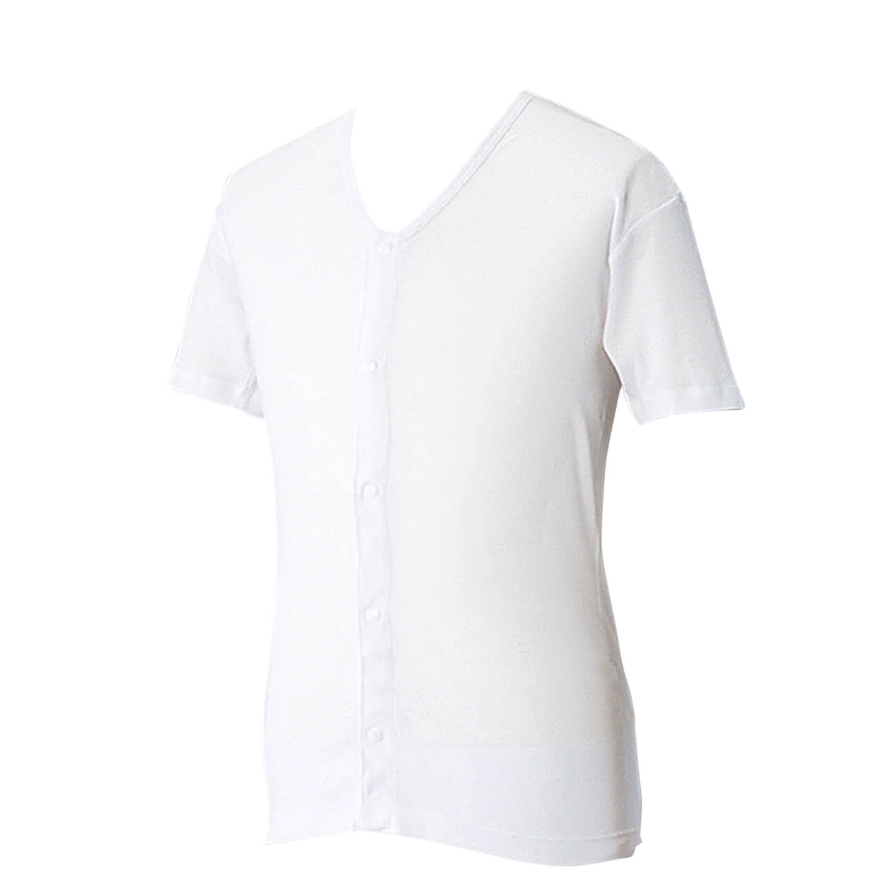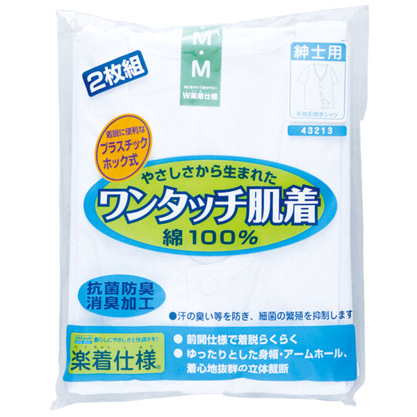 プラスチックホック式で半袖前開きになるメンズ(男性・紳士)用ワンタッチ肌着です。