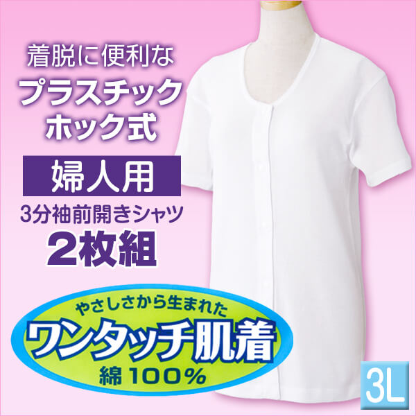 前開きシャツ 婦人 介護 下着 半袖 インナー 3L 2枚組 3L