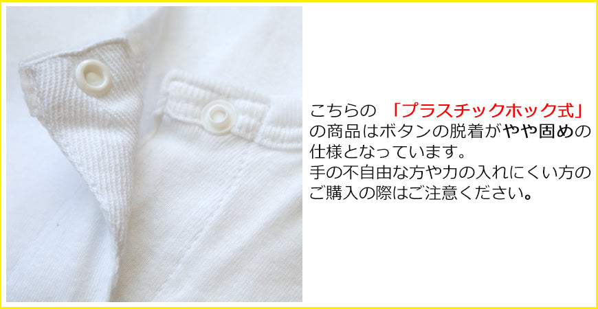 【注意】ボタンの着脱はやや硬めなので、手の不自由な方や力の入れにくい方がご着用する際はご注意ください。