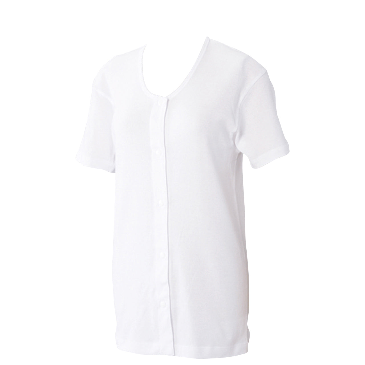 プラスチックホック式で半袖前開きになるレディース(婦人・女性)用ワンタッチ肌着です。