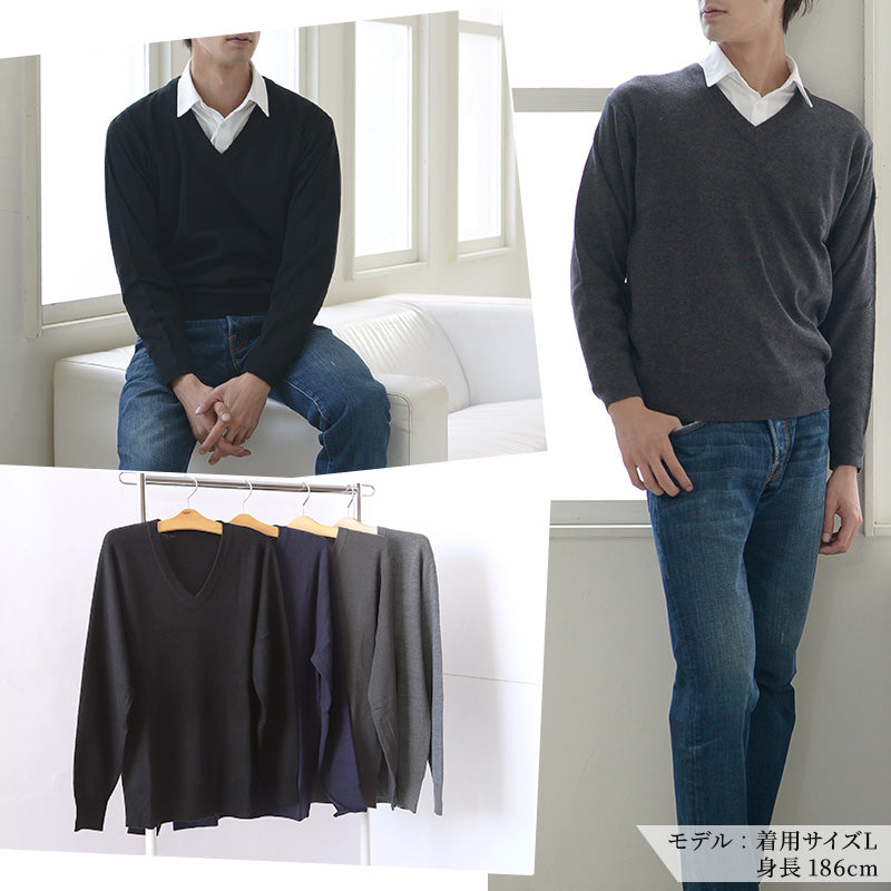 【メンズ】/【長袖シャツ】/【長袖V首シャツ】/【M】/【L】/【LL】/【3L】/【グレー系】/【ブラック系】/【ネイビー系】/【冬物】