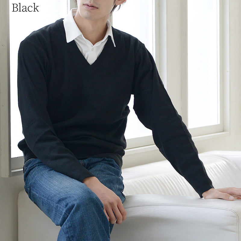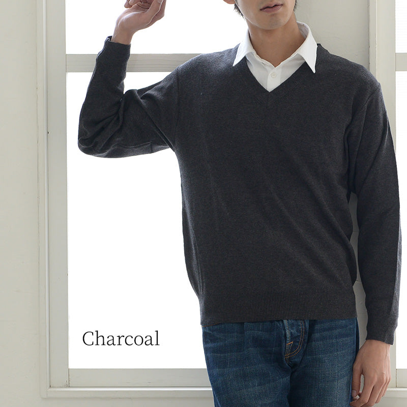 Sutetekoからメンズ用の薄手無地V首(Vネック)ニットセーターです。