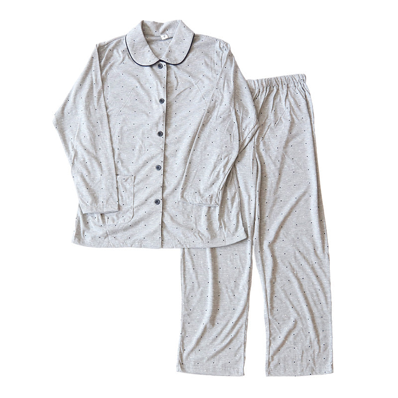 婦人 天竺ワンタッチ長袖長ズボンパジャマ 水玉 S~LL