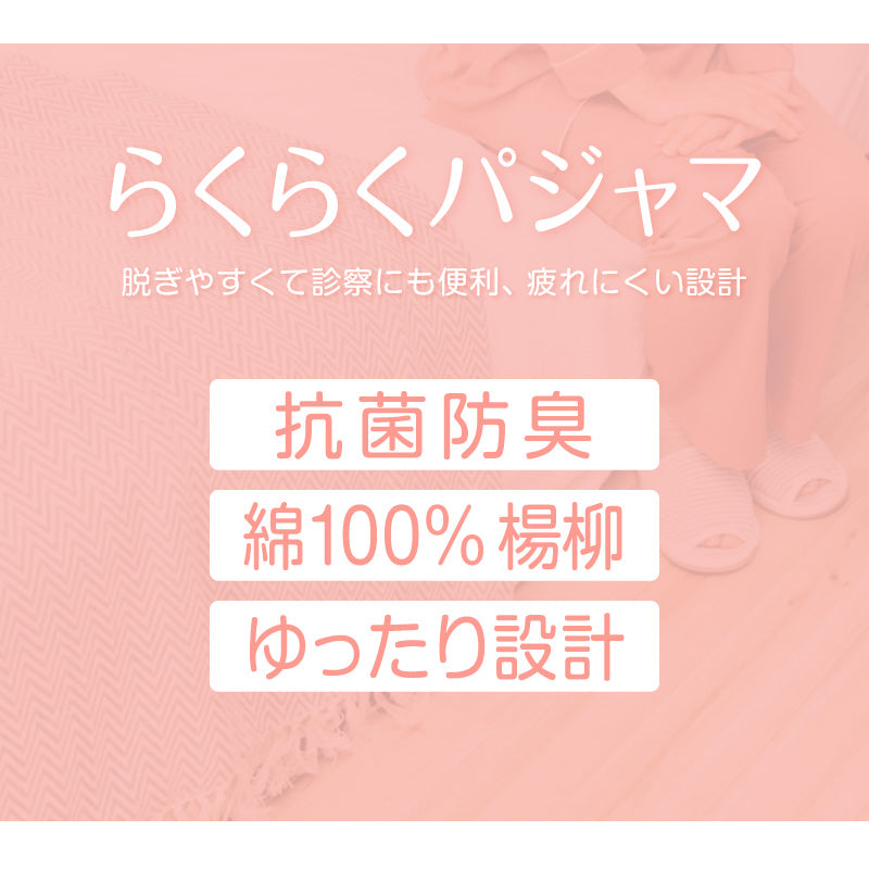 ワンタッチボタン/楊柳生地/身幅ゆったり仕様/ウエストゴム入替可能/袖口ゴム入り/ポケットあり(トップスに1つ・ボトムスに1つ)