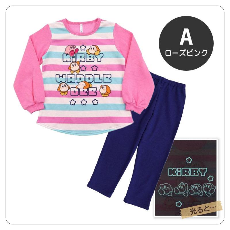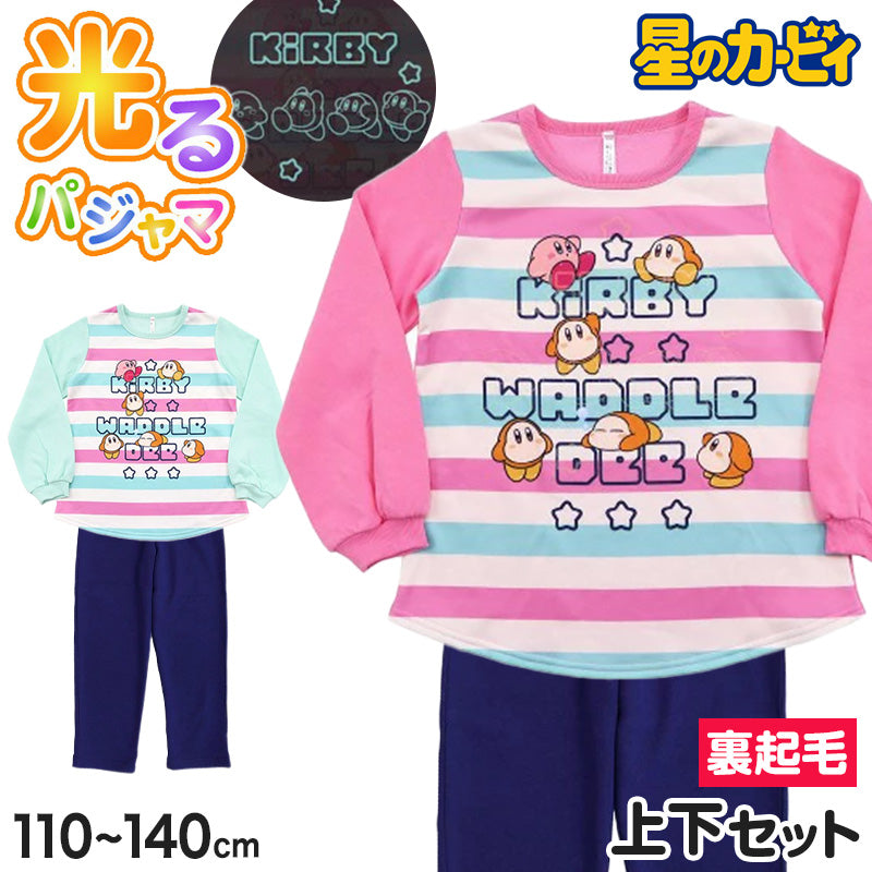 光るパジャマ 星のカービィ 女の子 裏起毛 キッズ 長袖 パジャマ 冬 トレーナー 上下セット 110cm~140cm