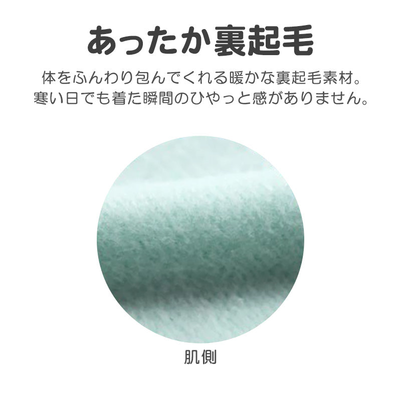 体をふんわり包んでくれる暖かな「裏起毛素材」。