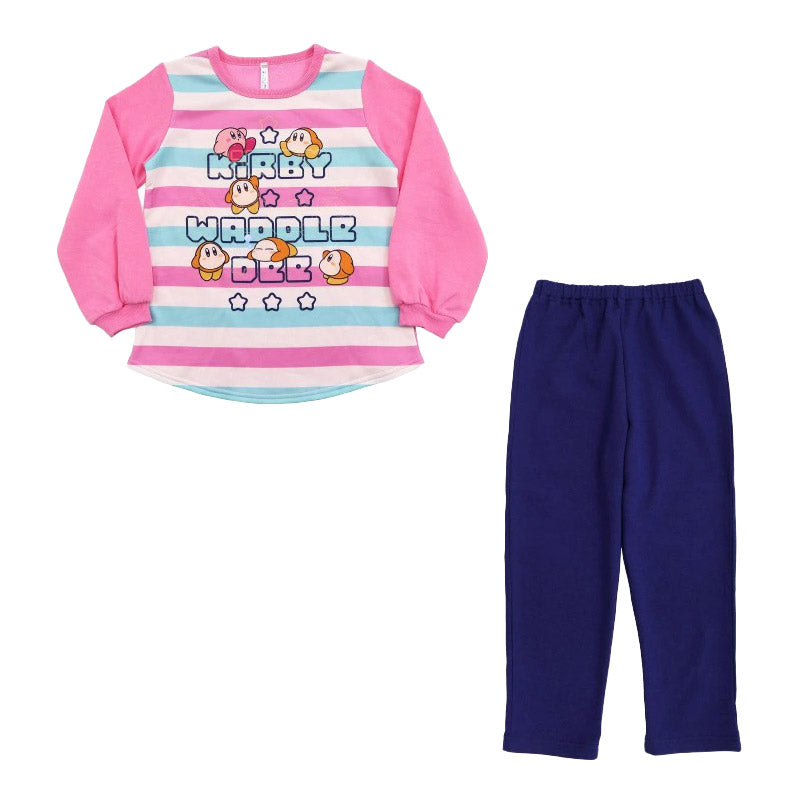 子ども服/パジャマ上下/ルームウエア/部屋着/寝巻き/寝間着/女の子用/綿混/お泊り保育/お祝い/ギフト/プレゼント/クリスマス/誕生日/大人気/人気キャラクター/バンダイ/BANDAI/カービー/ワドルディー/110/120/130/140/110cm/120cm/130cm/140cm/ボーダー/しまむらファンにおすすめ k-room-win 48524/AIR/air630