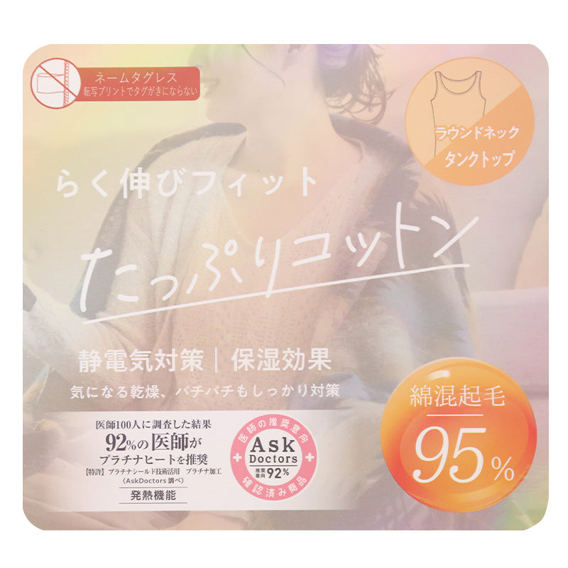 インナー タンクトップ レディース 綿混 起毛 丸首 M L LL