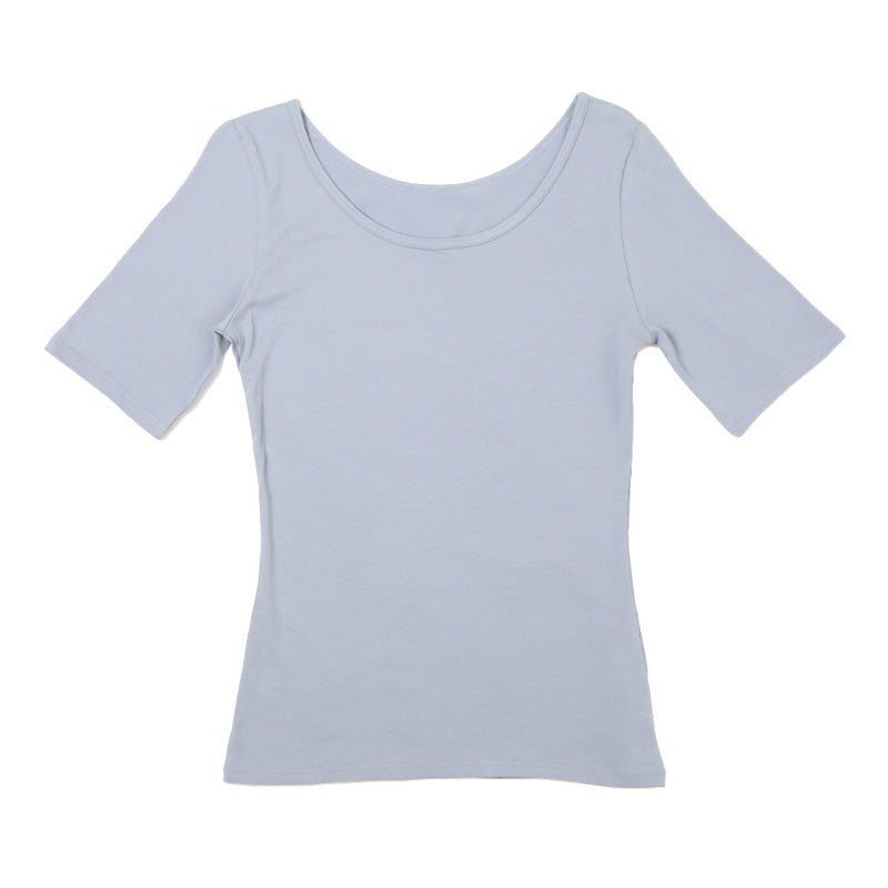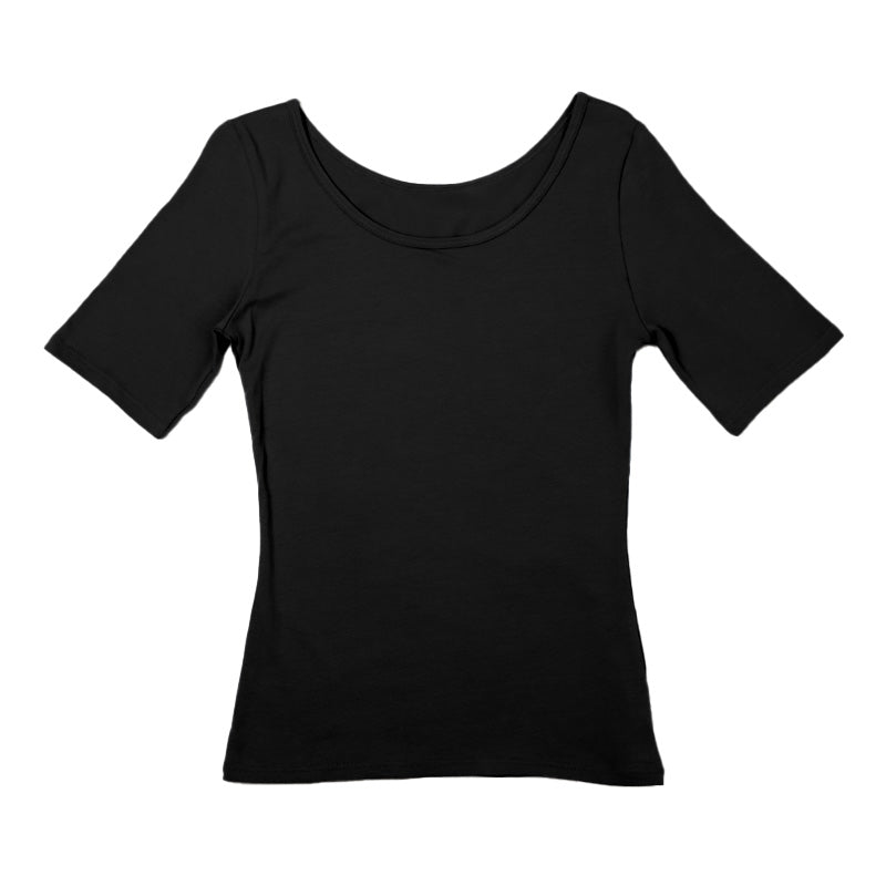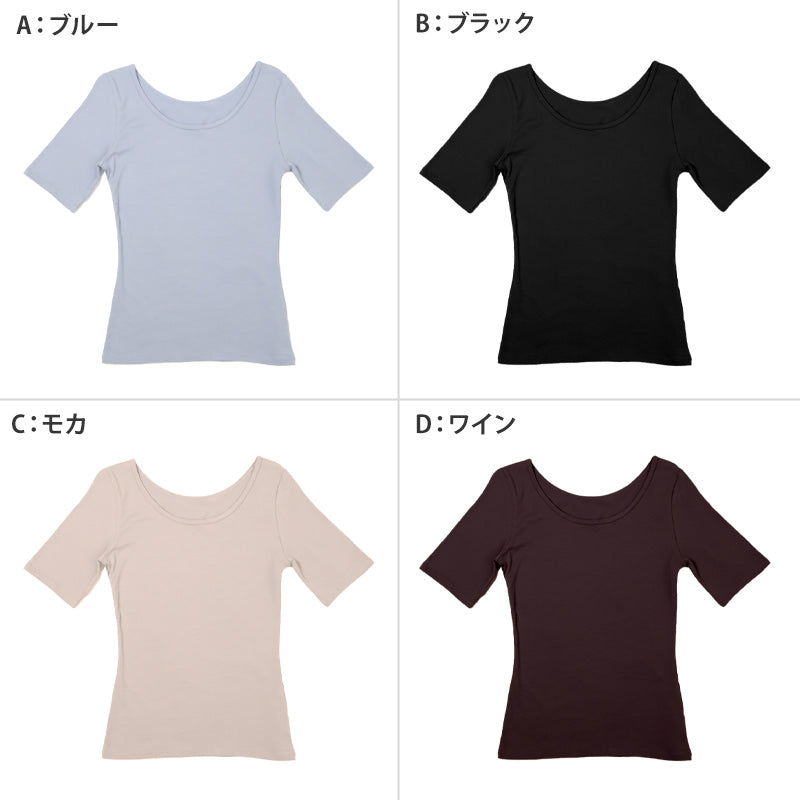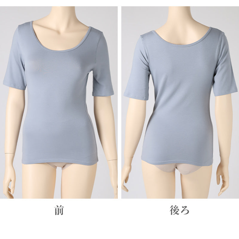 レディース らく伸びフィット Uネック 5分袖インナー。