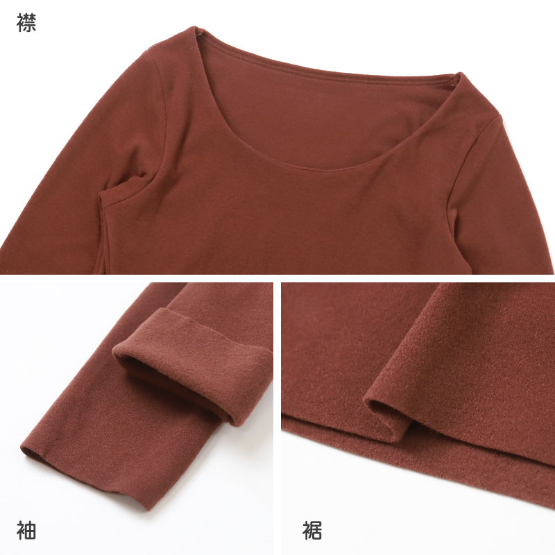 あったかインナー 両起毛 長袖 レディース 冬 冬用 胸当て付き M L LL 保温 防寒対策 冷え対策 暖かい 冬 冬用 下着 肌着 女性 薄手 ストレッチ 快適 温活 ヒートテック クルーネック あったか 無地 生活の木