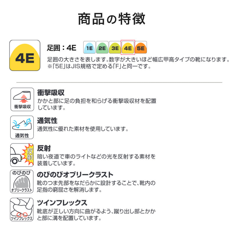 足囲:4E(一般的なものより幅広甲高なワイドタイプ)