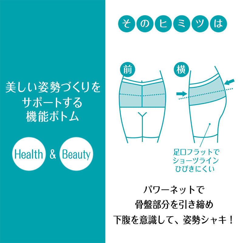 パワーネットで骨盤部分を引き締めることで、下腹を意識し、美しい姿勢づくりをサポートします。