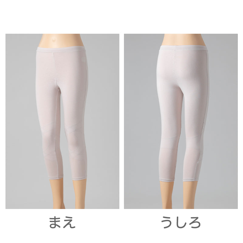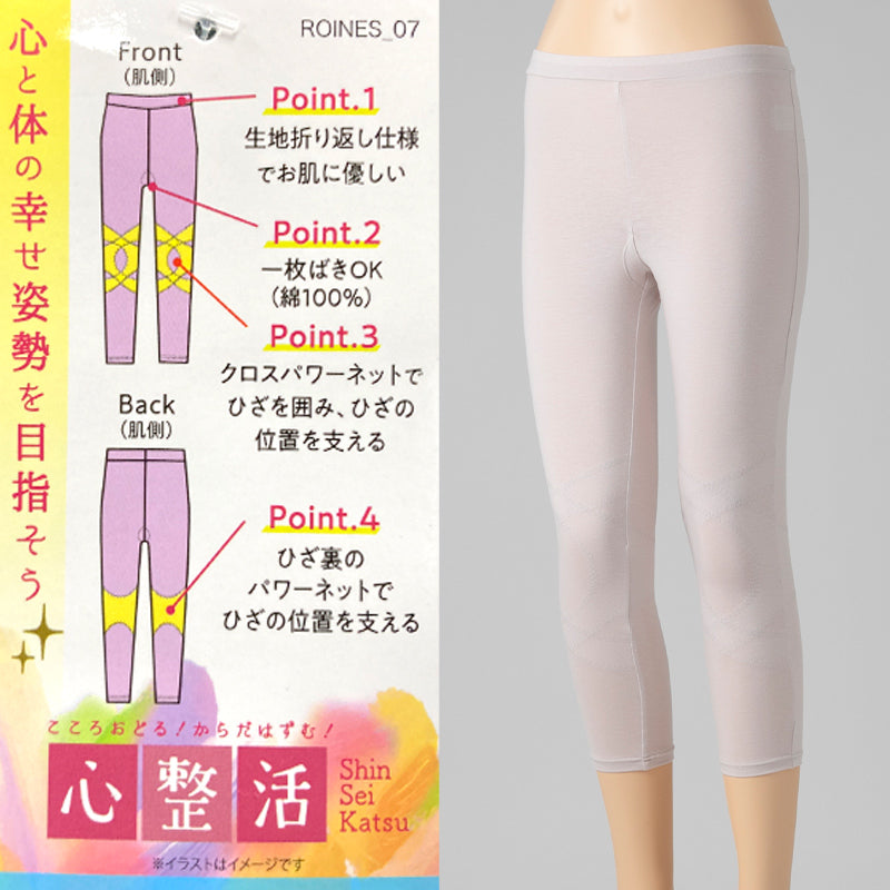 レディース ボトムス ひざサポート 7分丈 綿素材使用 ストレッチ生地 伸縮性 パワーネット ヨガ ウォーキング 立ち仕事 らくらく レギンス M L LL パープル ベージュ グレー M~LL