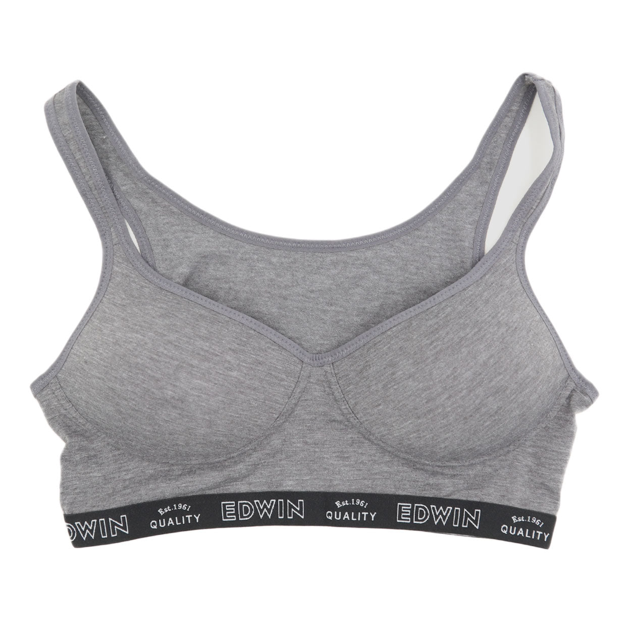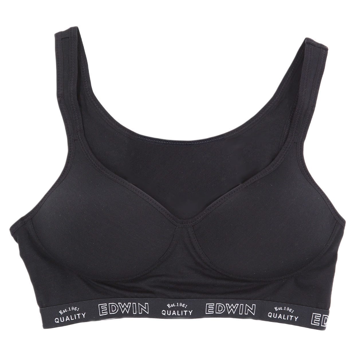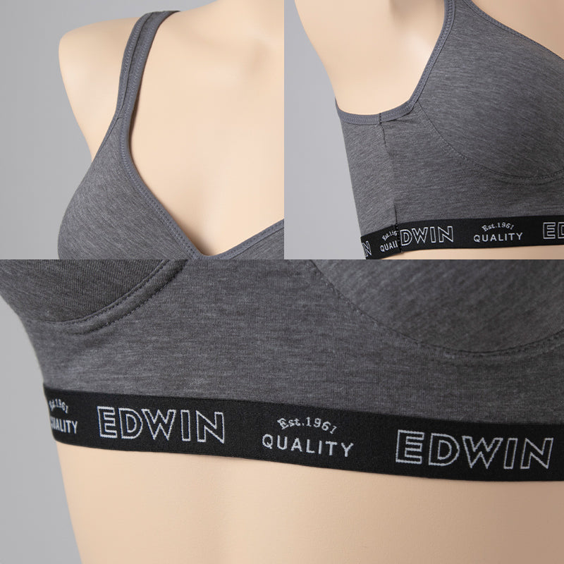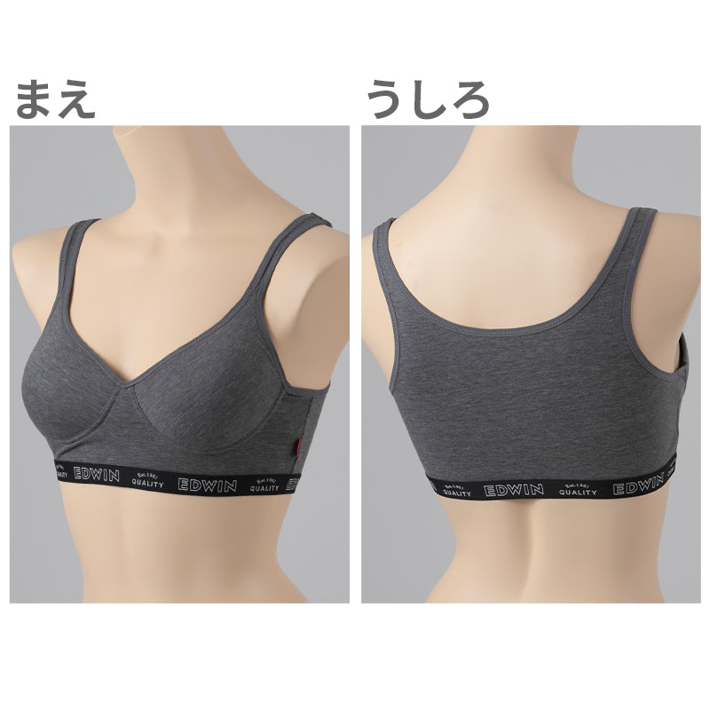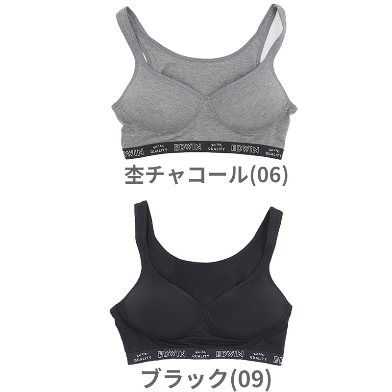 レディース ノンワイヤーブラ モールドカップブラ EDWIN 綿素材 フィット感 柔らかい 着け心地 快適 優しい肌触り ストレッチ 動きやすい 快適 下着 インナー ブラジャー ロゴ入り 女子 M L 黒 チャコール グレー M・L