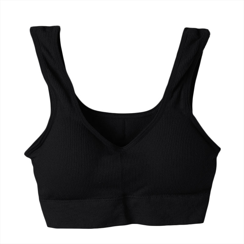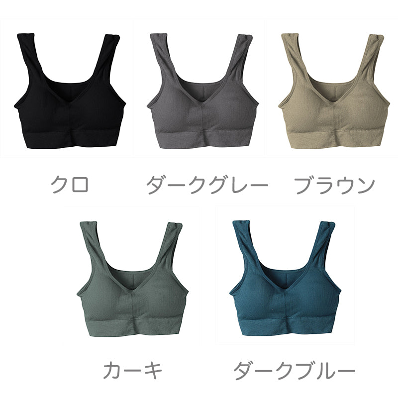 ノンワイヤー ブラジャー ワイヤレス リブ生地 ハーフトップ 無地 シンプル リラックス 締め付けない ストレッチ 伸縮性 伸びる ヨガ おうち 自宅 ゆったり らくらく 黒 グレー 茶 青 緑 M L LL 3L M~3L