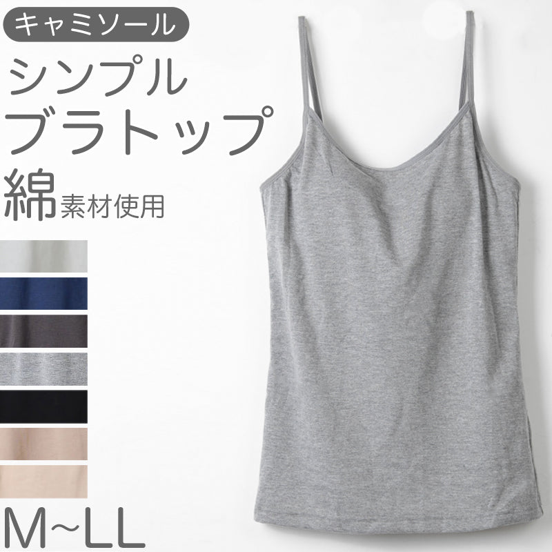 カップ付き キャミソール レディース ブラトップ 綿素材使用 綿混 無地 シンプル ベーシック 楽 ゆったり 重ね着 インナー リラックス ヨガ 下着 春 夏 秋 黒 白 グレー ベージュ 青 茶 M L LL M~LL
