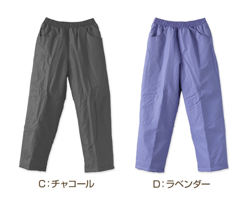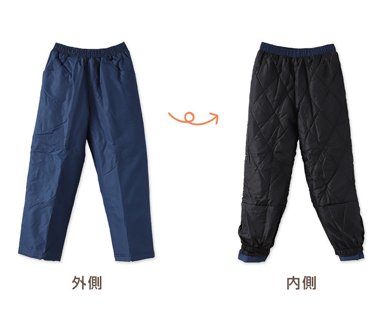 あたたかく、ウエストゴム仕様で着脱もラクチン。