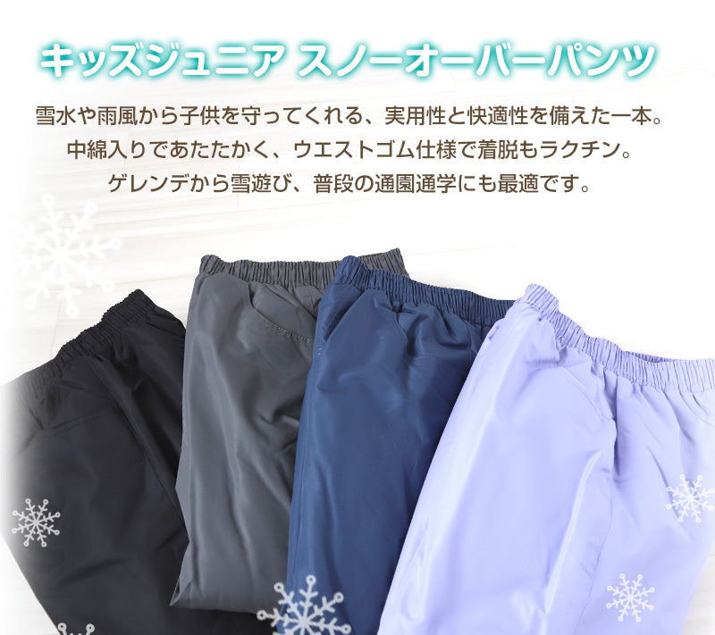 あったか中綿入りの キッズ ジュニア スノーパンツ。