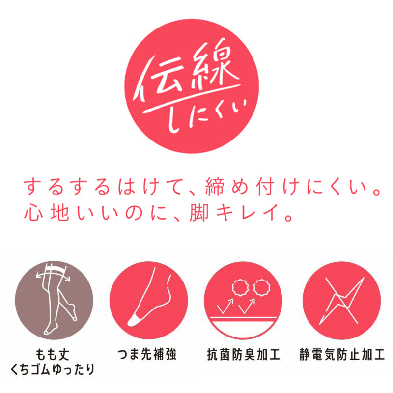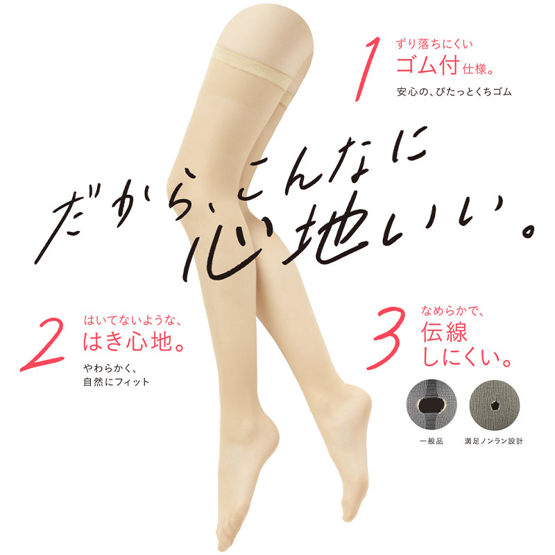 こちらは「もも丈」のノンラン ストッキング「口ゴムゆったり」で快適な履き心地です。