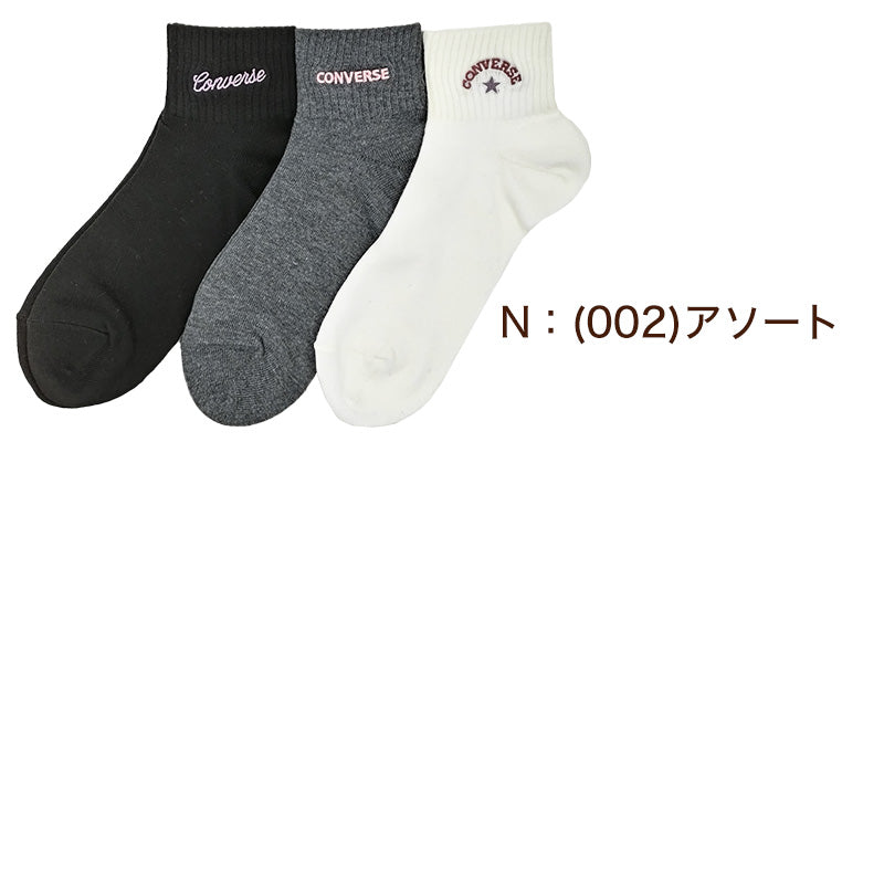 コンバース 片面刺繍 ソックス 3足組 23-25cm 靴下 レディース CONVERSE アソート 3足セット ワンポイント スニーカー くるぶし 福助