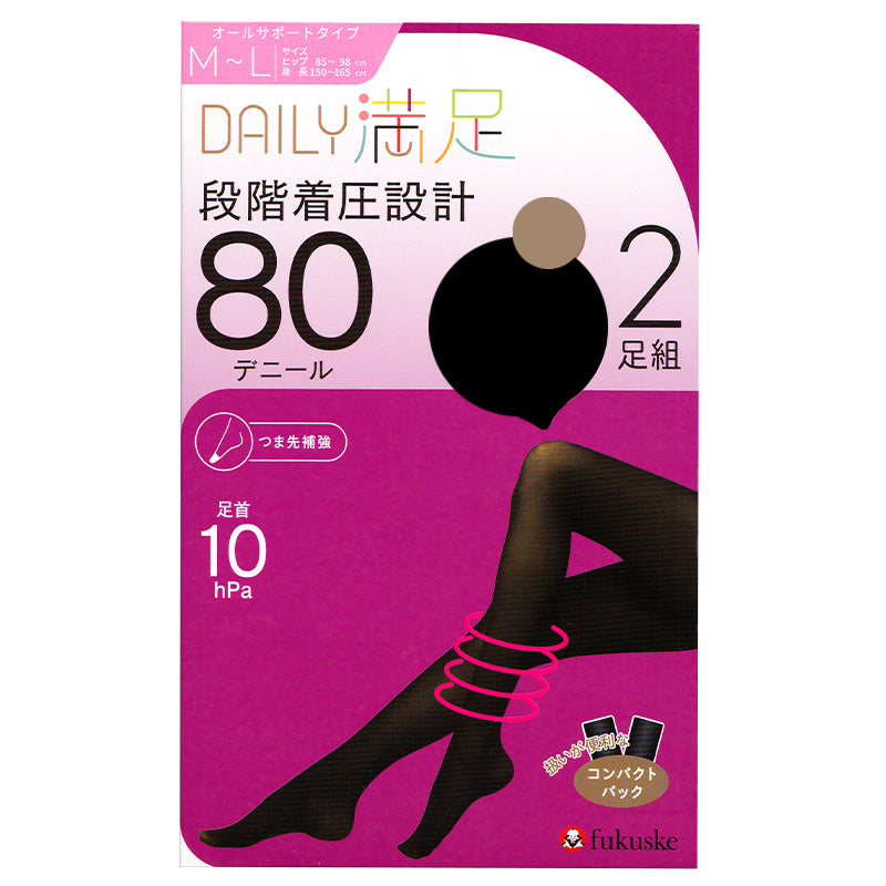 福助 着圧 タイツ 80デニール 2足組 M-L・L-LL
