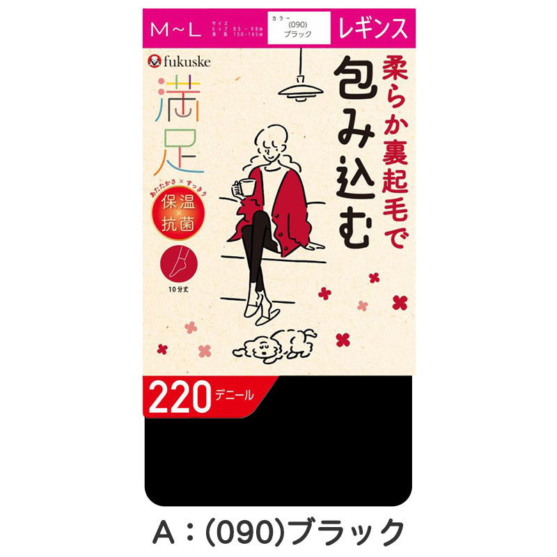 レギンス 10分丈 裏起毛 レディース 福助 満足 220デニール M-L
