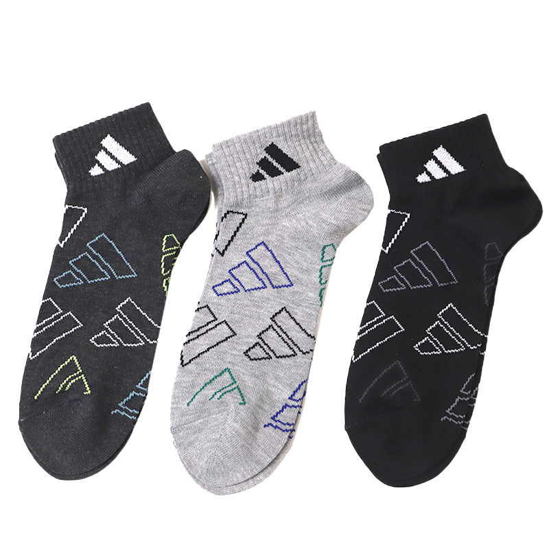 靴下 ショート ソックス メンズ 男子 adidas 3足組 24-26 26-28cm 中学生 高校生 黒 男性 くるぶし くつ下 ワンポイント 丈夫 スポーツソックス 黒 グレー 杢 (在庫限り)
