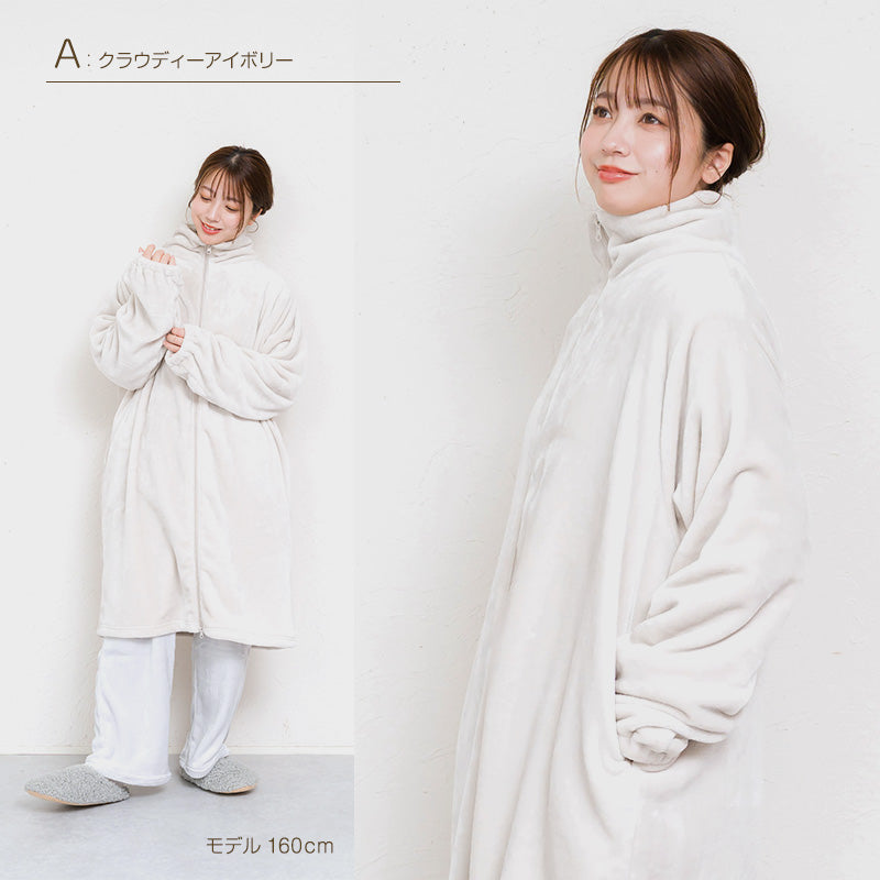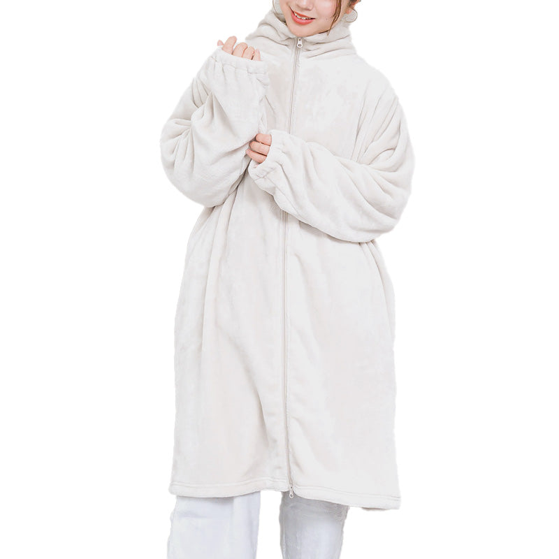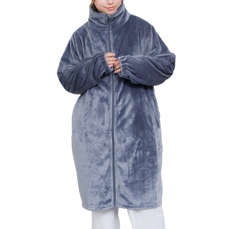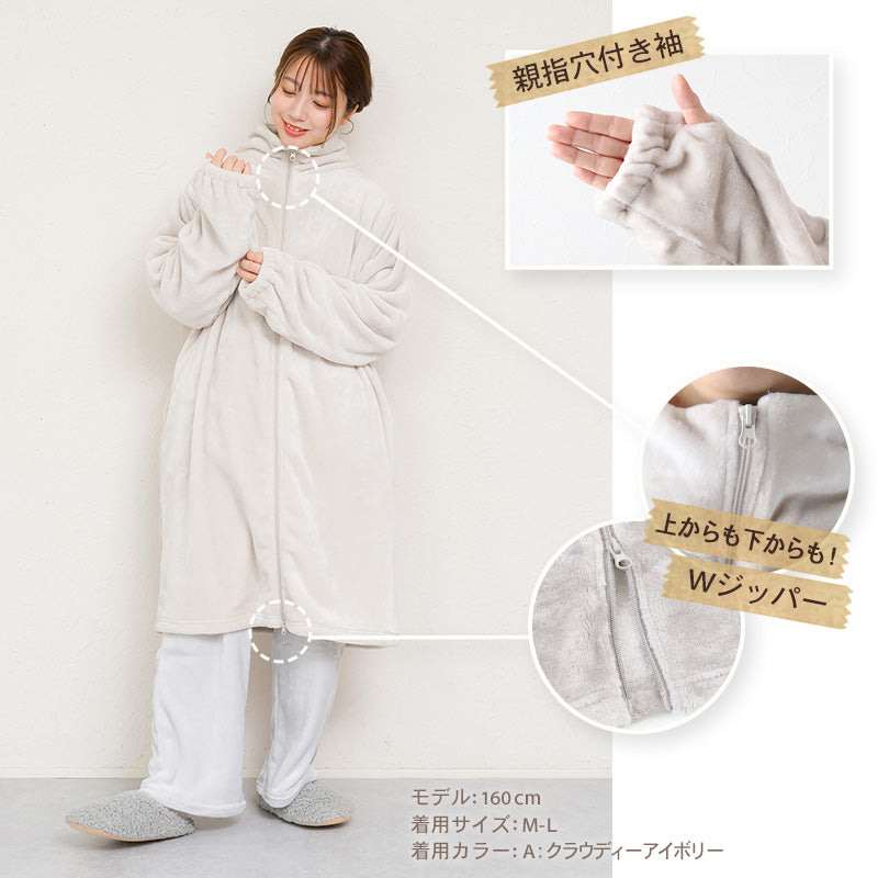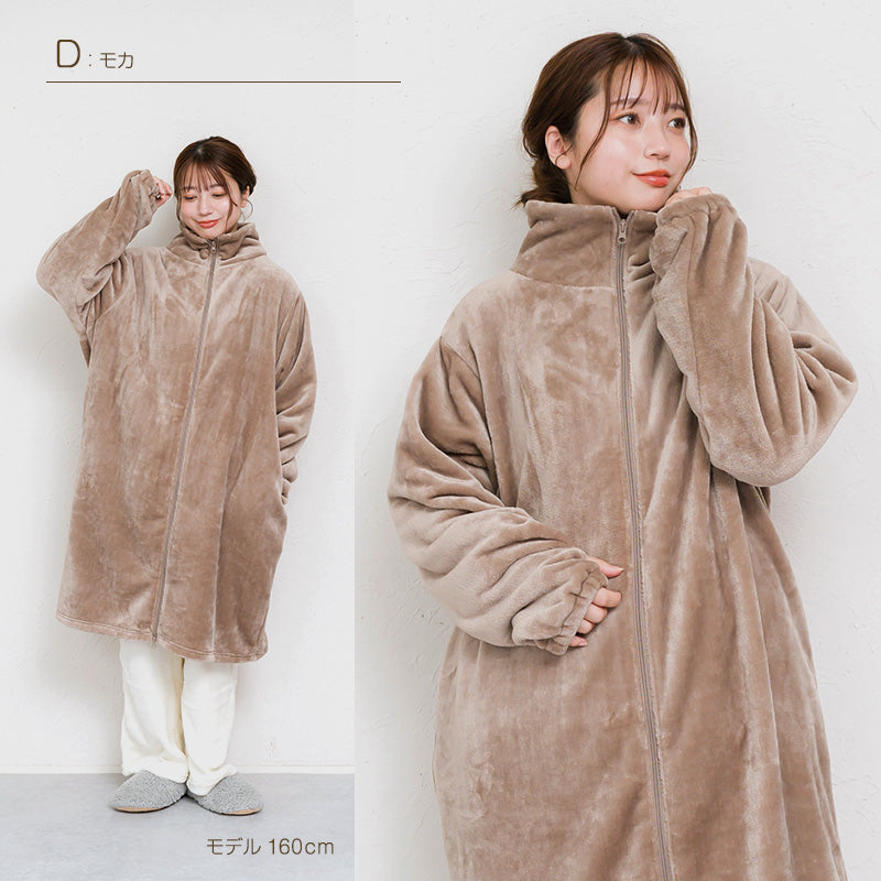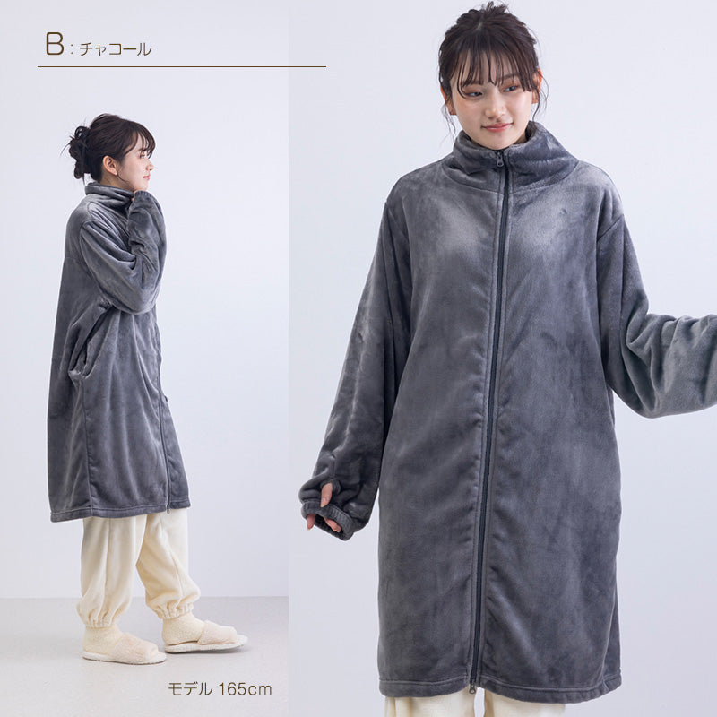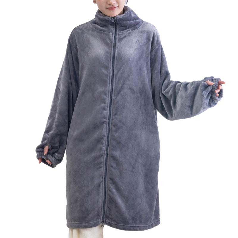 軽くて暖かい♪まるで毛布のような素材の指穴付きジップアップローブです。