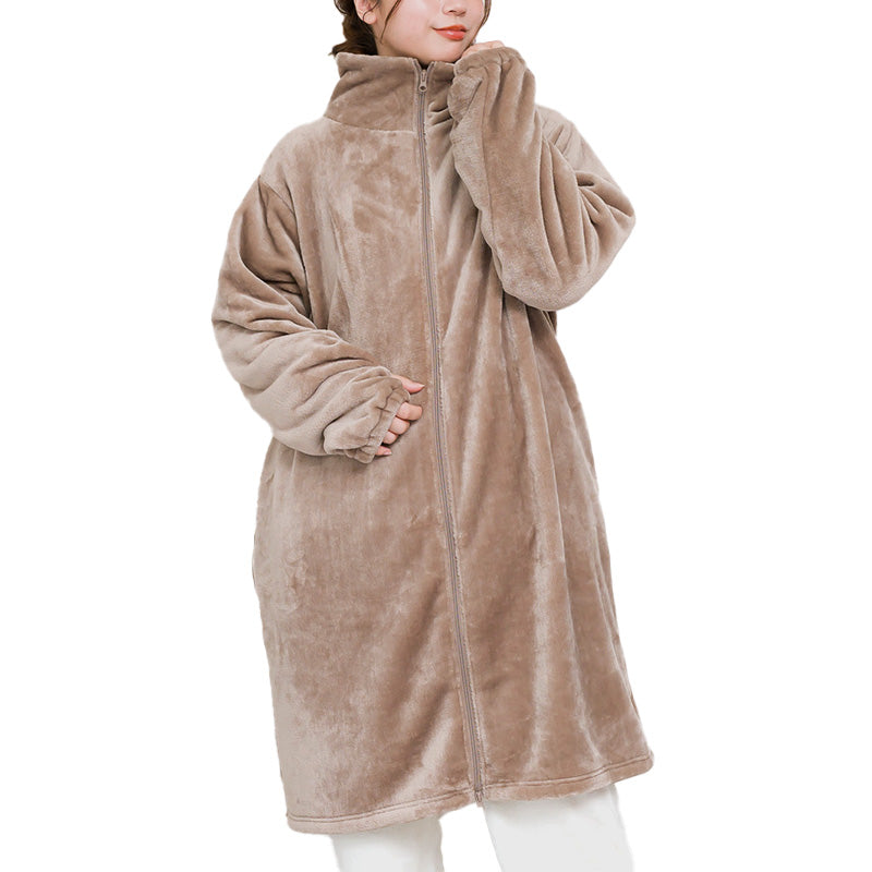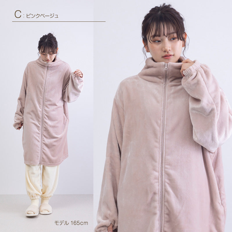 スリーパー 大人 レディース ルームウェア ロング丈 ジップアップ 羽織 ガウン 暖かい M-L