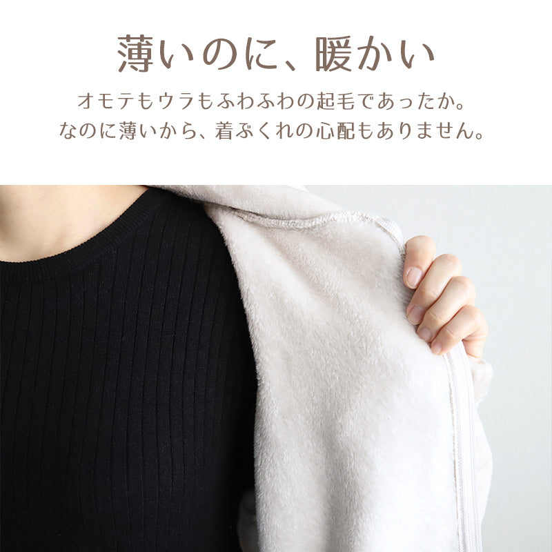 裏表ふわふわのニューマイヤー素材/起毛/静電防止加工(効果の目安は1シーズン)/ポケット2つ/ジップアップタイプ(ジッパー式)/親指穴付き/袖口ゴム仕様