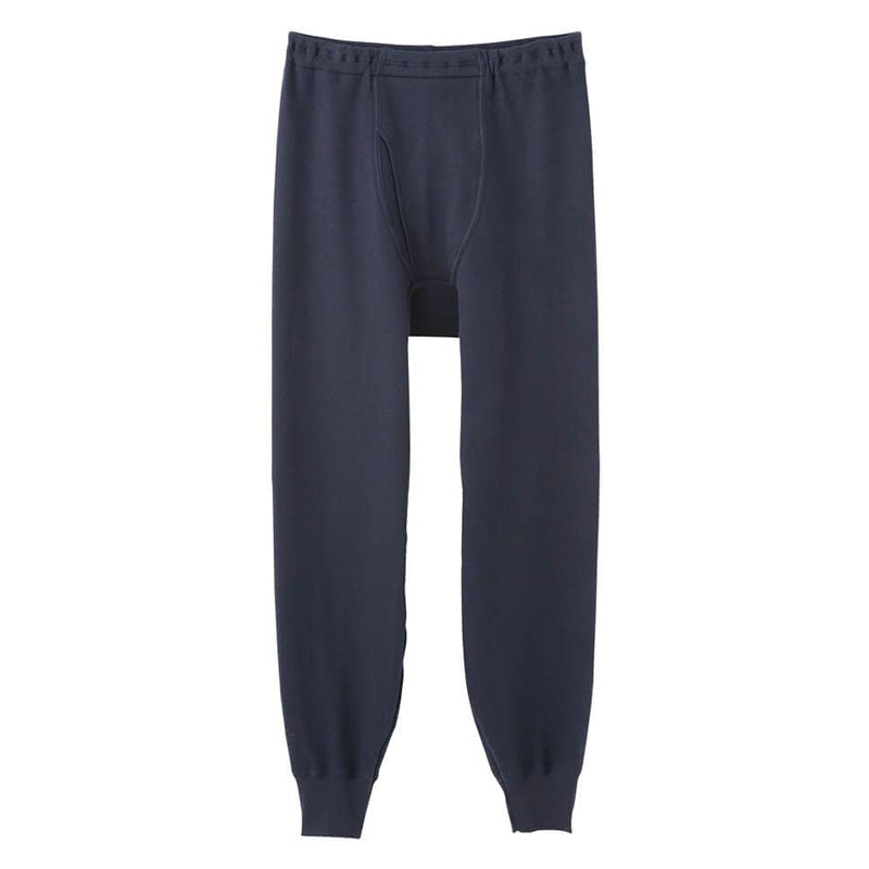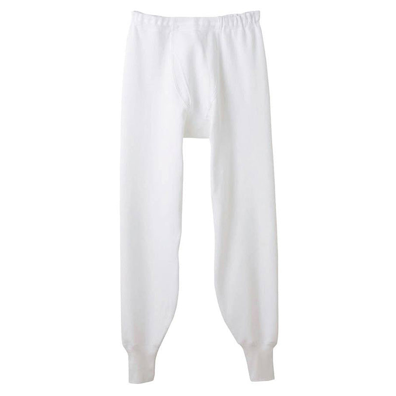 快適工房 紳士 コットンバルキー 長ズボン下 メンズ M L LL インナー 綿100% あったか 保温 冬用 防寒 肌着 下着 前あき 腰ゴム交換口 ゆったり設計 やや厚手 ホワイト ネービーブルー ライトベージュ シンプル ベーシック 日本製 ロングセラー