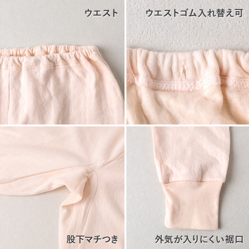 裾口にはやわらかいゴムを使用し、足首からの冷気をしっかり防ぎます。