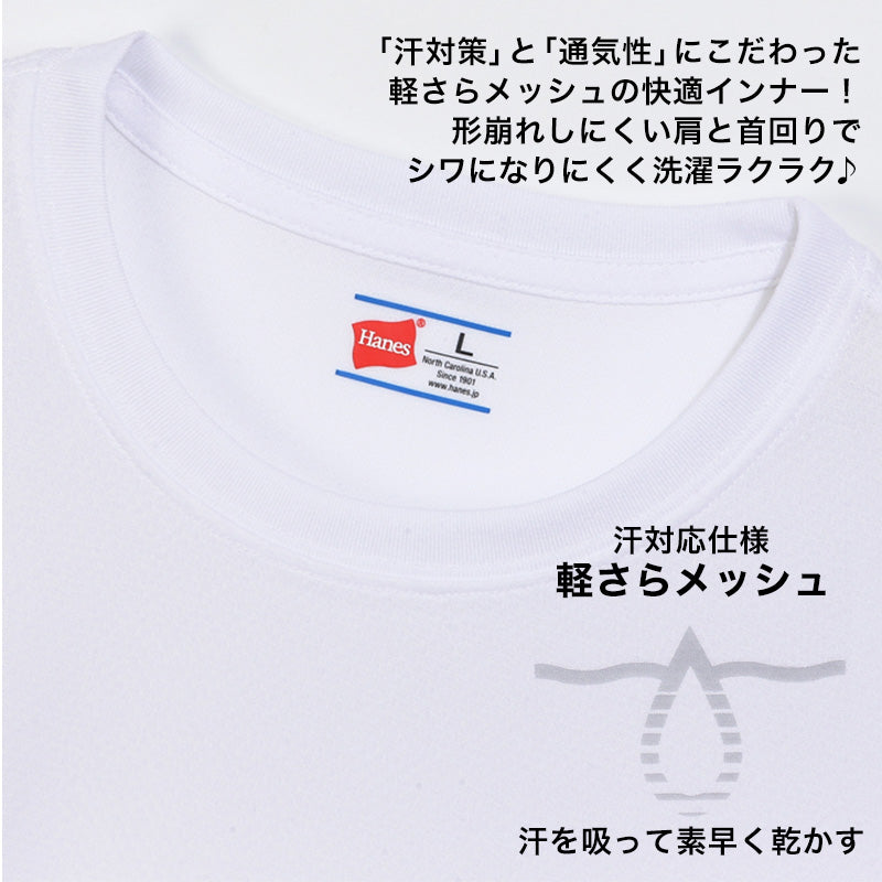 Hanes/Men's/irt/ヘインズ/メンズ/男性/紳士/インナー/下着/シャツ/Tシャツ/白/吸汗速乾/通気性/型崩れしにくい/伸縮性/メッシュ/軽さらメッシュ2枚組/ビジネス/ビジネスマン/通勤/Yシャツ/ワイシャツ/クールビズ/大きいサイズ/大きめ/3L/4L/5L/hm1-g4/hm1-g4-3l/しまむらファンにおすすめ m-ss-cr HM1-G704/HJ/hm1-g704-3l-g