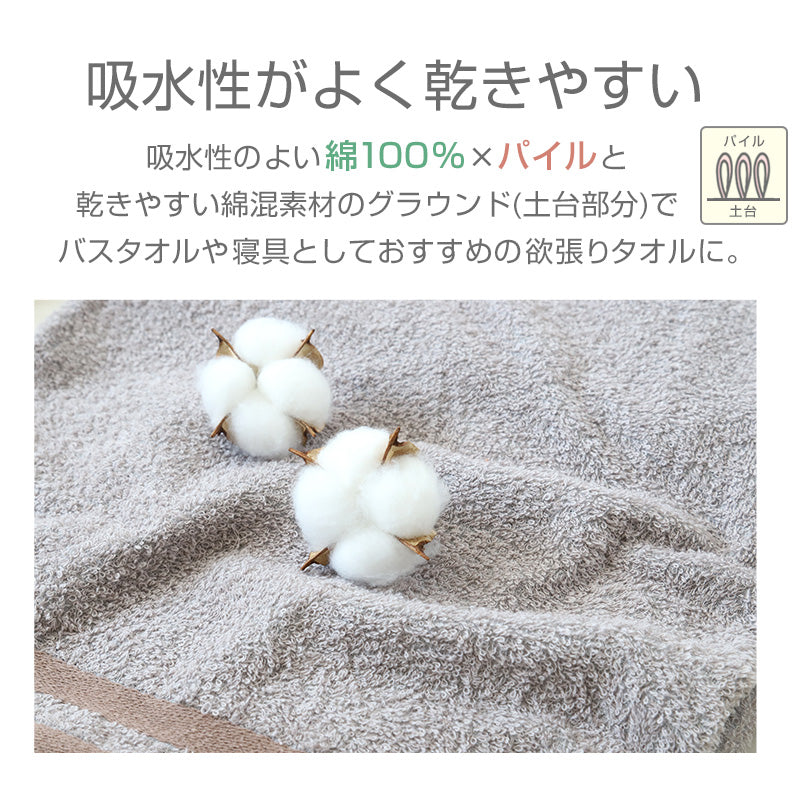 直接肌に触れやすいパイル部分は綿100%素材となっているので肌ざわり柔らかでしっかり吸水♪