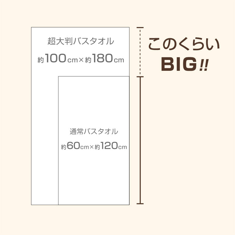 こちらは【 約100×180cm 】の超大判バスタオルになります。