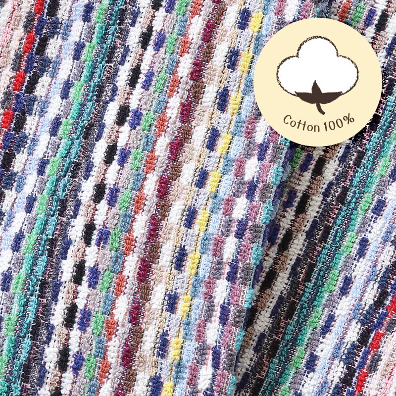 余った糸で作られているため、ひとつひとつ風合いの違う1点もののタオルとなります。