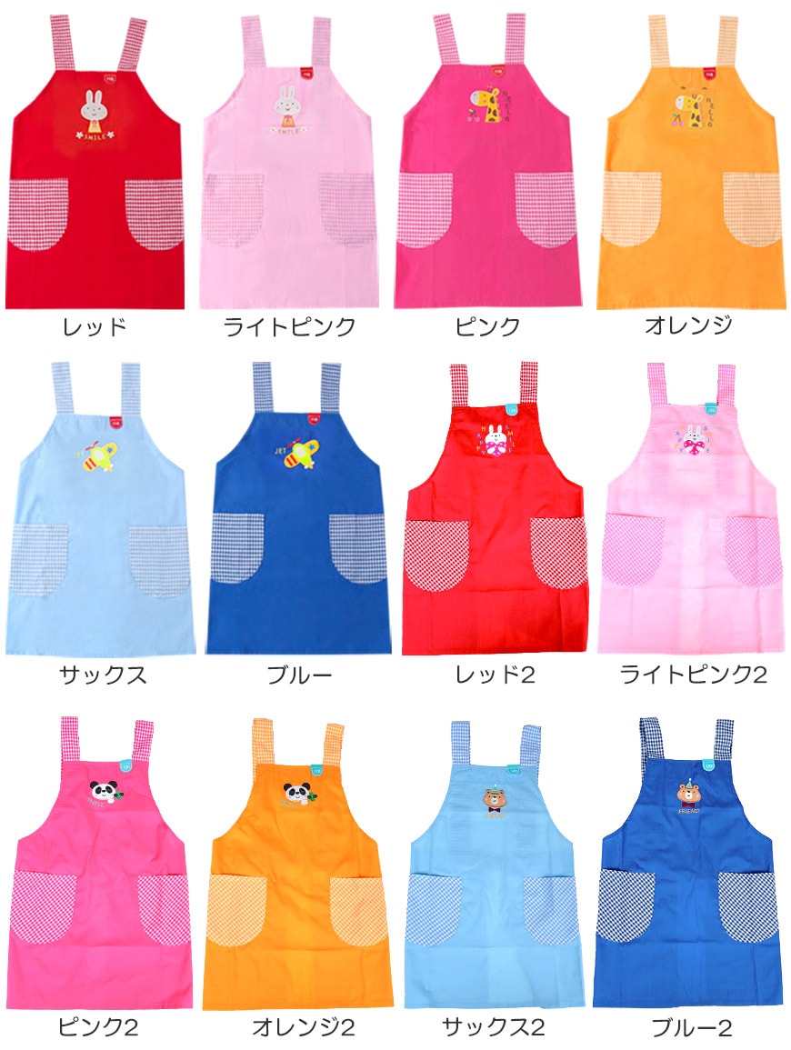 無地&チェック柄のカラフルな子供用エプロンになります。