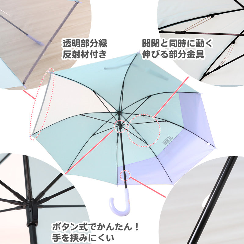 • 画像をギャラリービューアに読み込む, 子供用 傘 後ろが伸びる 女の子 小学生 キッズ ランドセルが濡れない JENNI 55cm 60cm 子供 子ども 雨傘 ジャンプ傘 透明窓 クリア 反射材 スクール かさ 紫 ミント 緑 パステル