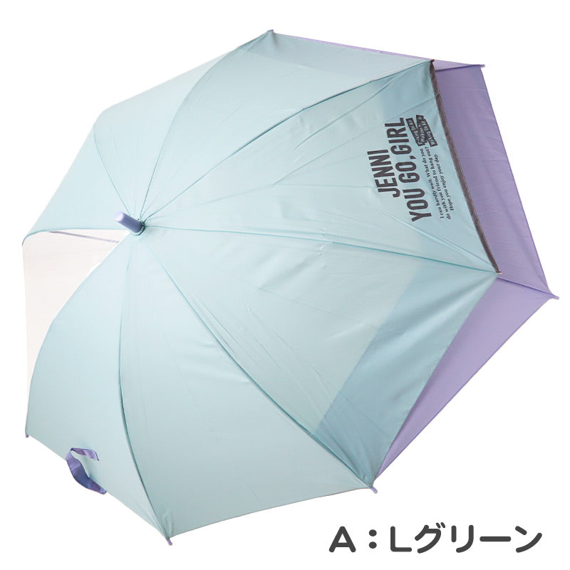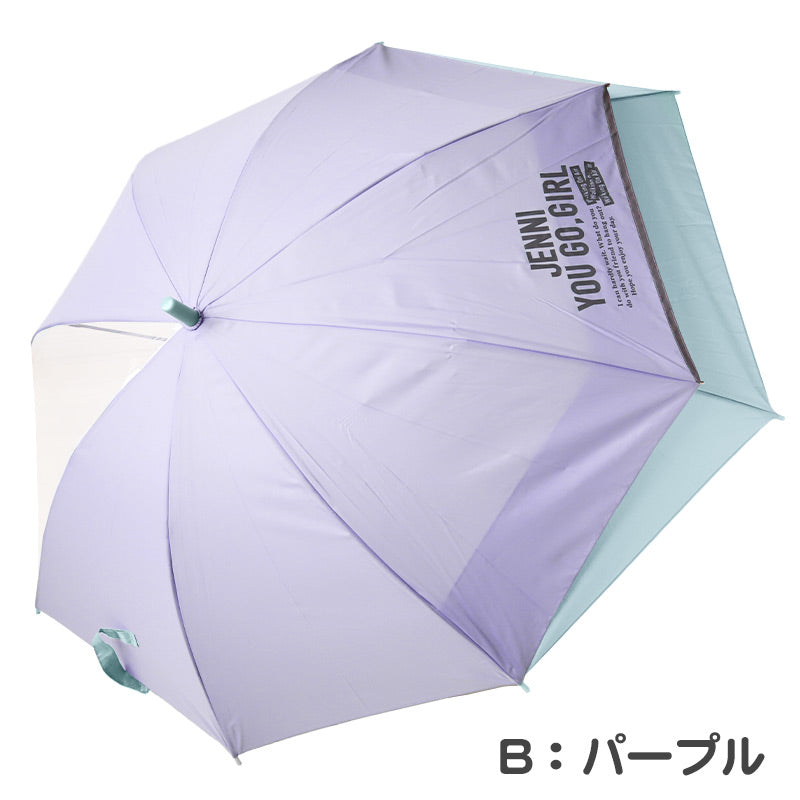 子供用 傘 後ろが伸びる 女の子 小学生 キッズ ランドセルが濡れない JENNI 55cm 60cm 子供 子ども 雨傘 ジャンプ傘 透明窓 クリア 反射材 スクール かさ 紫 ミント 緑 パステル