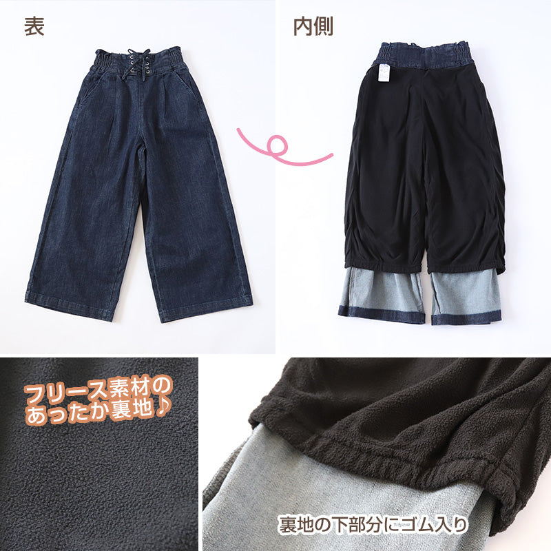 女の子 ワイドパンツ 裏起毛 裏地つき 140~160cm