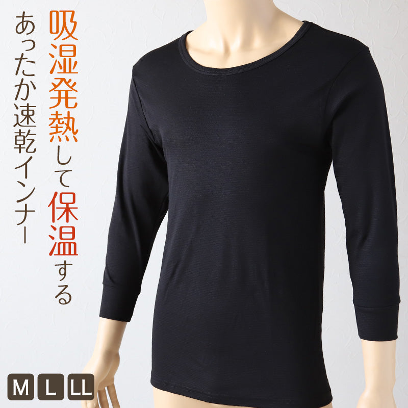 【メンズ】/【長袖シャツ】/【長袖丸首シャツ】/【M】/【L】/【LL】/【ブラック系】/【冬物】/【吸汗速乾】