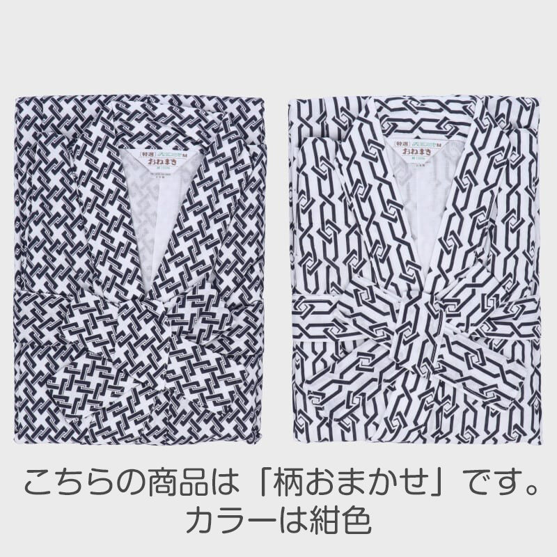 綿100% ガーゼ 日本製 紳士用 おねまき メンズ 寝巻き 男性用 パジャマ ルームウェア ナイトウェア 和式 寝間着 紺色 柄おまかせ 通年用 快適 吸汗 通気 軽量 入院 介護 施設用 M・L