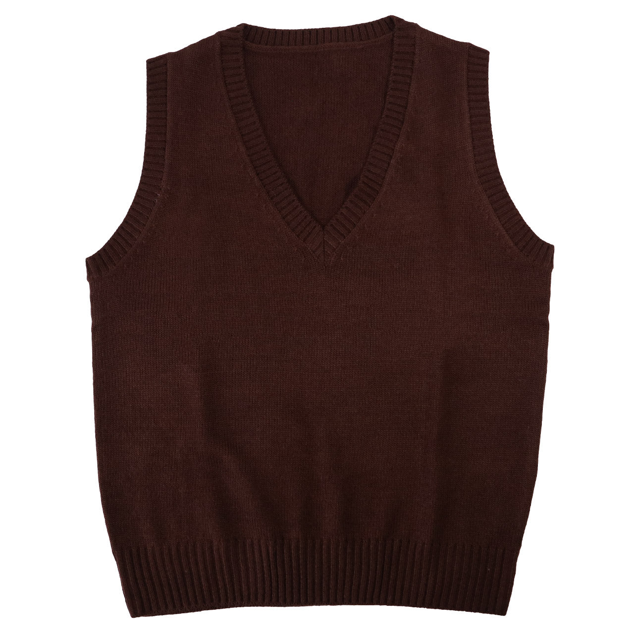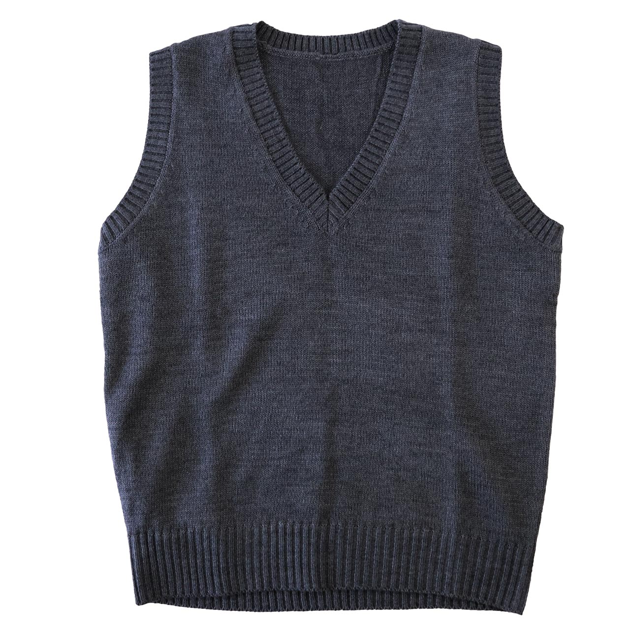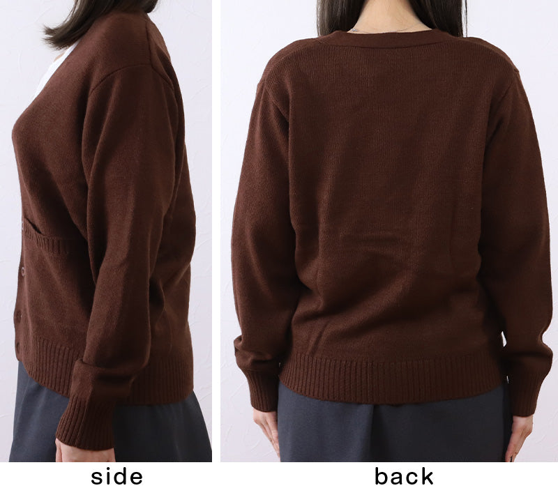 女子用のスクールニット 無地V首(Vネック)ウール混ニットカーディガンです。
