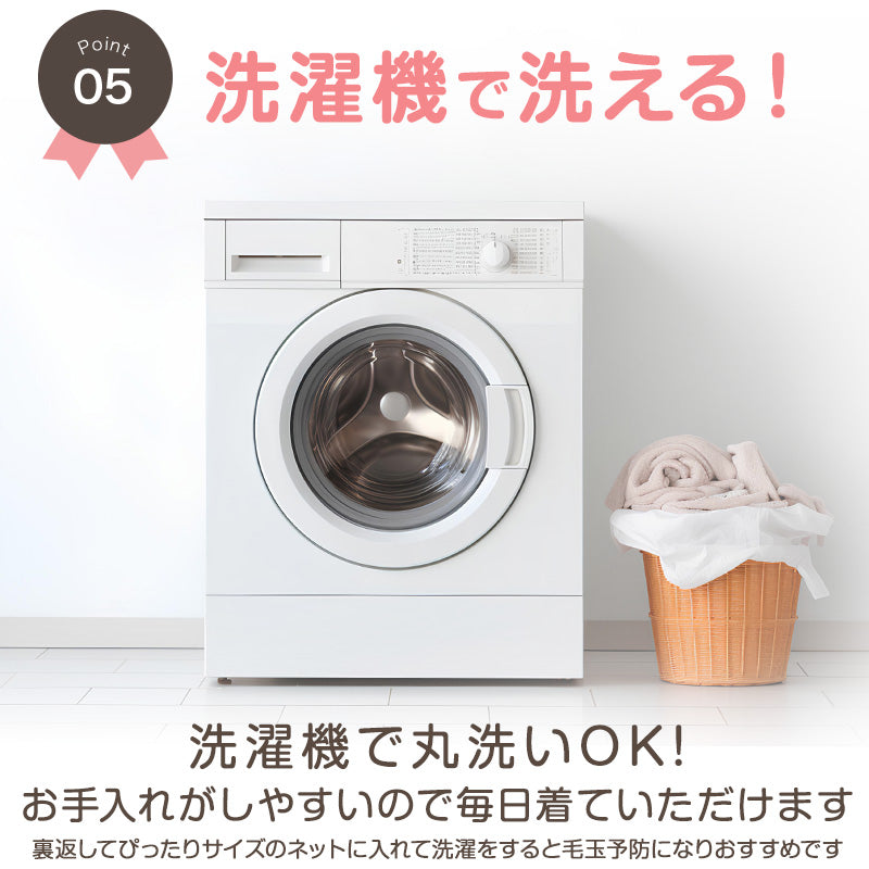 ・裏返してぴったりサイズのネットに入れて洗濯をすると毛玉予防になりおすすめです。