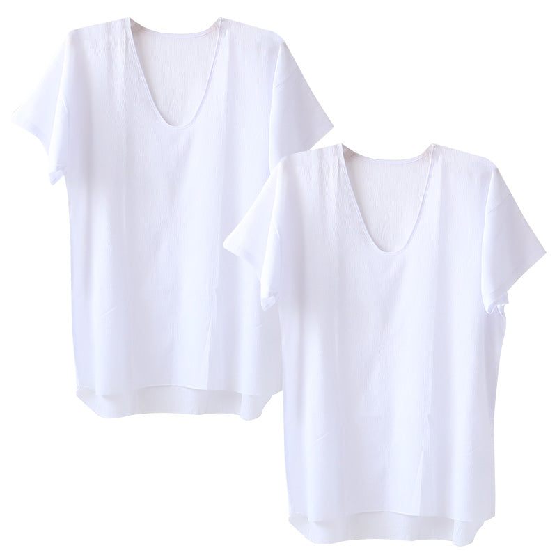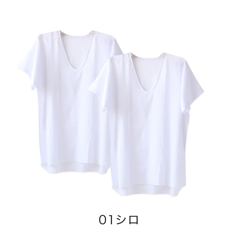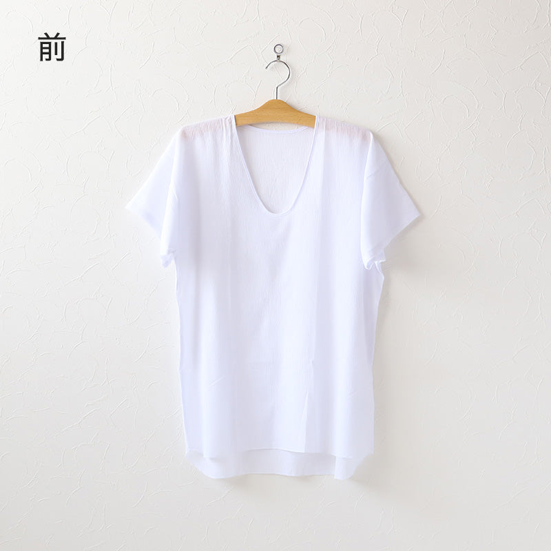 夏にお勧めのクレープ肌着シリーズ、波シボタイプの半袖U首シャツです。