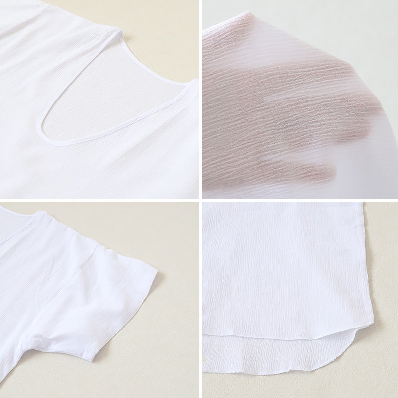 凹凸のある生地で、汗をかいても肌にべったり貼り付きにくく快適。