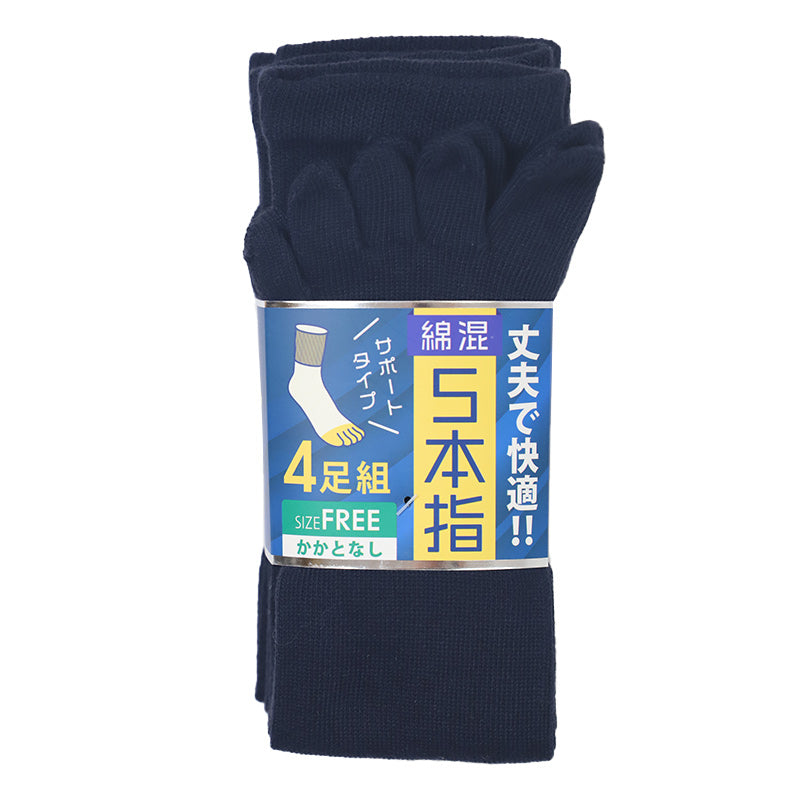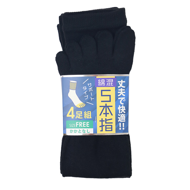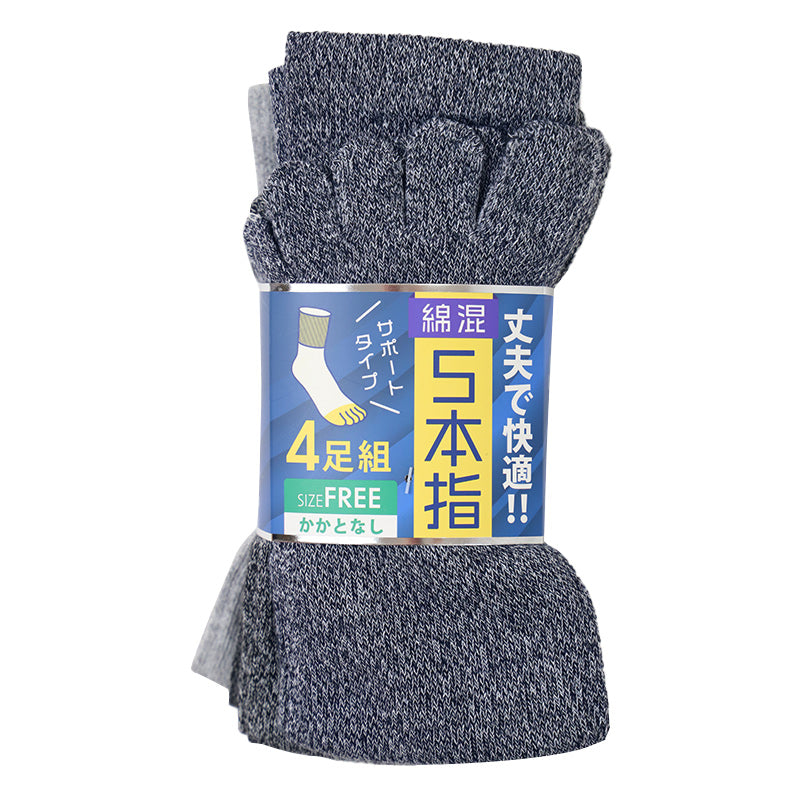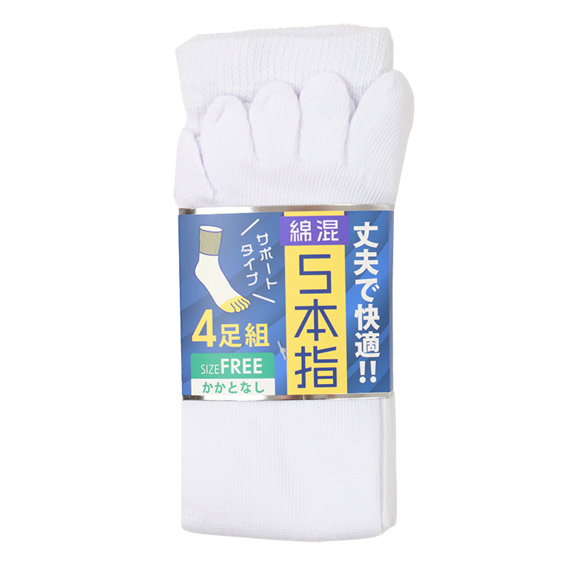 メンズ 5本指 ソックス 4足組 かかとなし フリーサイズ