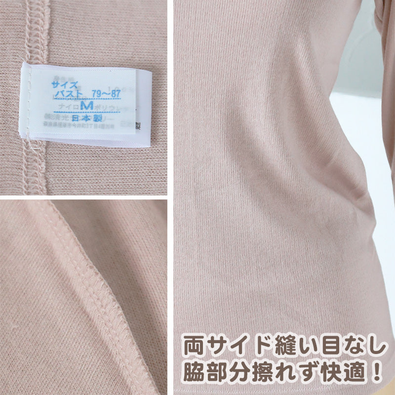 レディース 肌着 長袖 綿100% 婦人 無地 丸首 9分丈 両起毛 日本製 M L LL