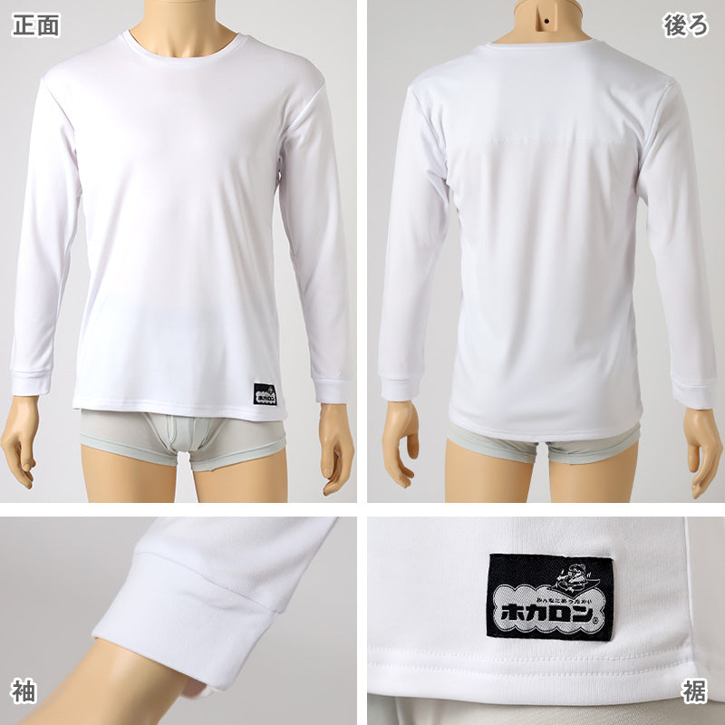 ホカロン 裏起毛 メンズ 長袖 シャツ 保温 あったかインナー 丸首 M L LL