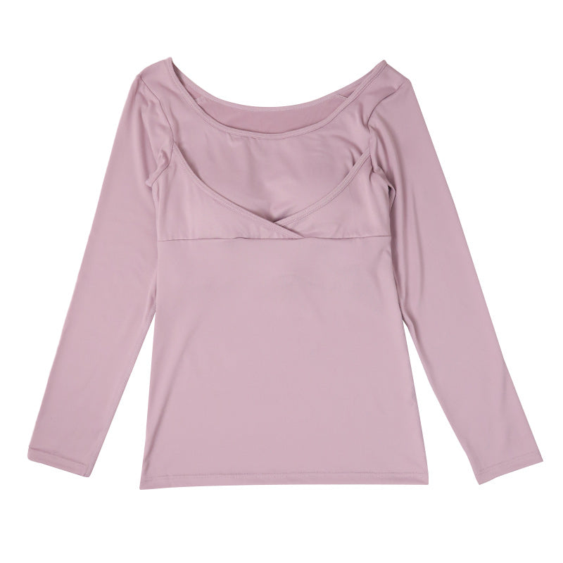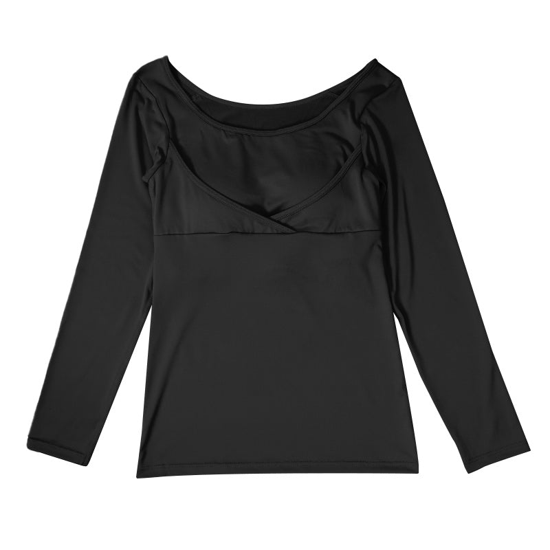 胸サポートカップ付き、昼夜兼用の長袖インナー。